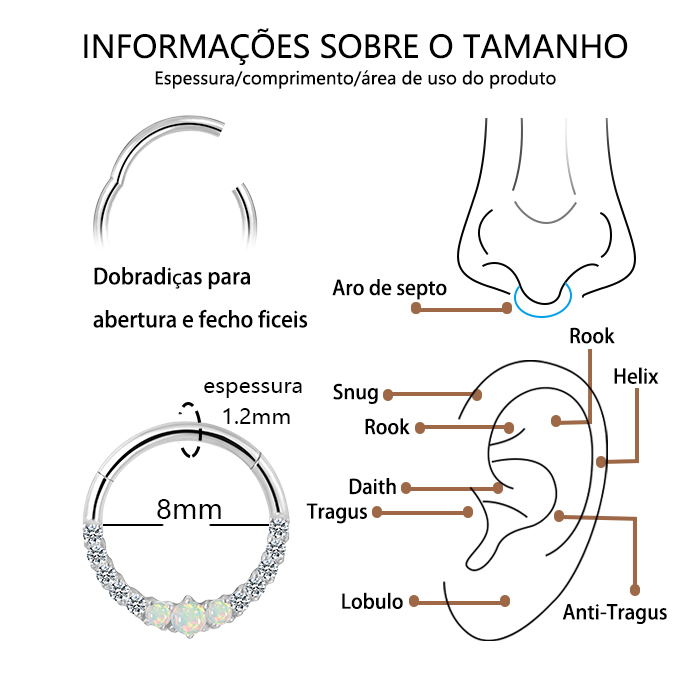 Com espessura de 1.2 mm e tamanhos de 8 mm e 10 mm, adapta-se perfeitamente a perfurações como Helix, Rook, Conch e Septo. Ideal para quem gosta de peças práticas e com um toque refinado, seja usada sozinha ou em composições modernas.