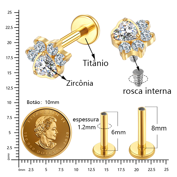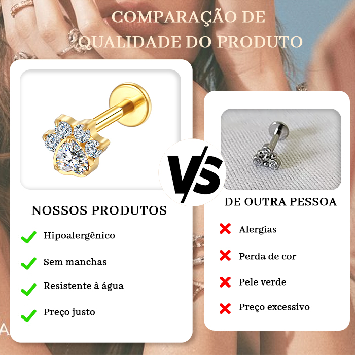 Nossas joias não contêm níquel e são perfuradas com titânio de grau implantável (ASTM-F136) e aço ASTM-F138/316LVM de grau implantável.