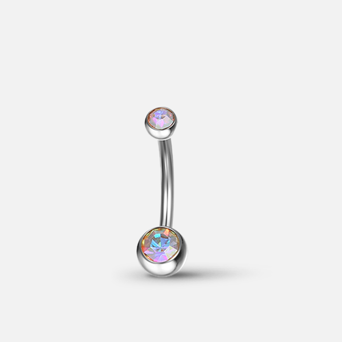 Piercing umbigo banana titânio com 2 pedras zircônia aço